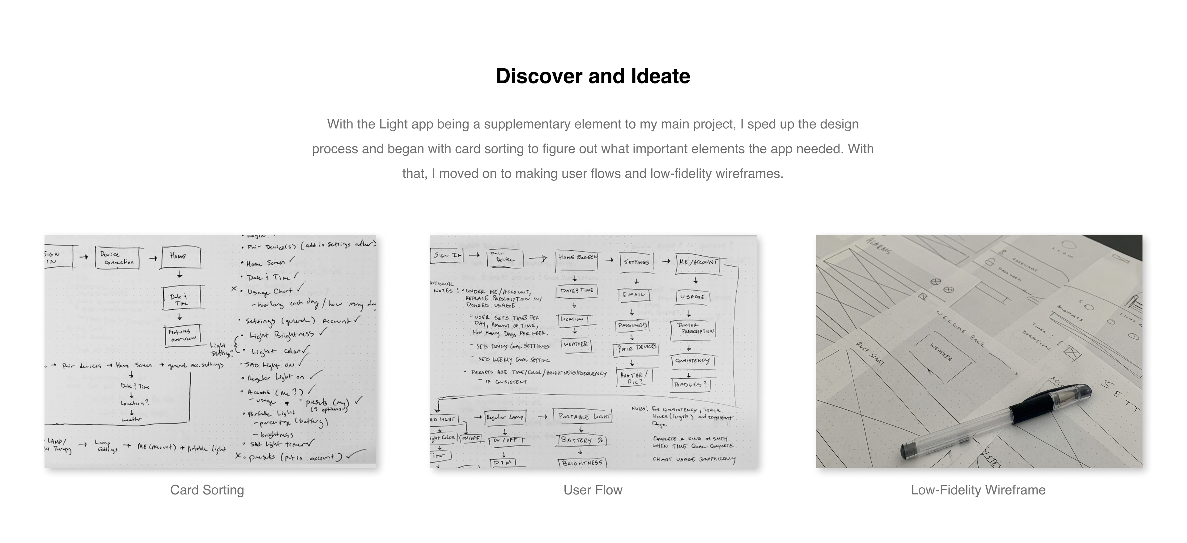Design a platform that not only enables, but encourages owners to use Light on a daily basis. Seasonal depression light therapy relies heavily on routine use, which made the mains design goals of the app usability and incentive. The app needed to be easy and convenient to use, while also providing users with a reason to regularly use the app.
